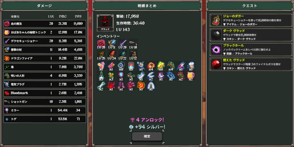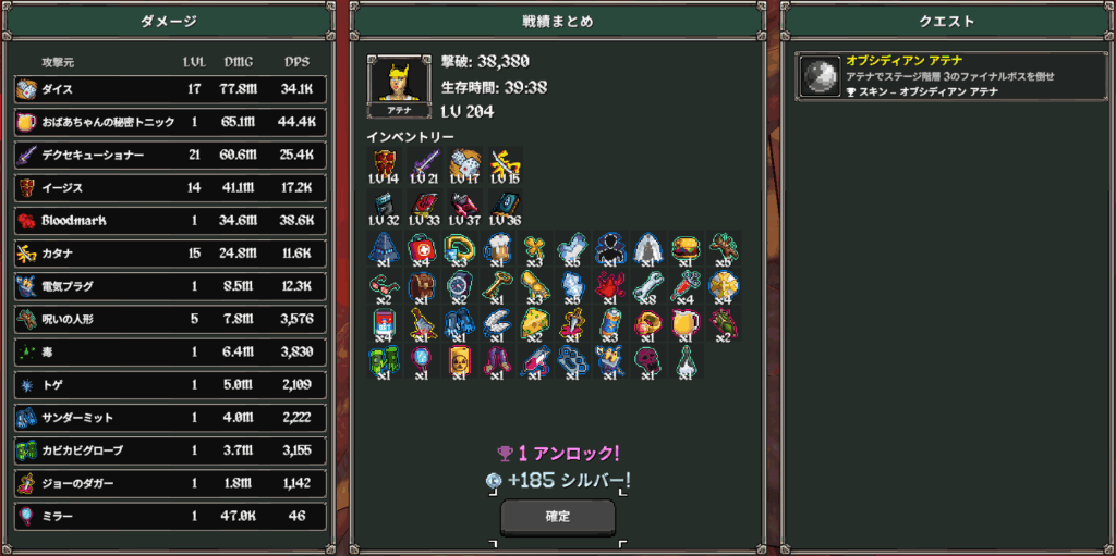理想の武器構成としては、カタナを血の魔法に変更でしょうか。何だかんだファームがしんどいのでダイスを入れました。