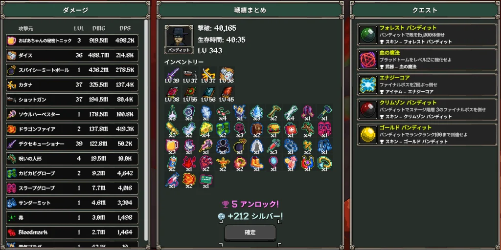 クリアできた要因としては序盤に拾ったソウルハーベスター。このアイテムがあるだけでエネミーラッシュを簡単に乗り越えられます。敵が多いほど追尾ソウルが発生し、ダメージを担ってくれるため。