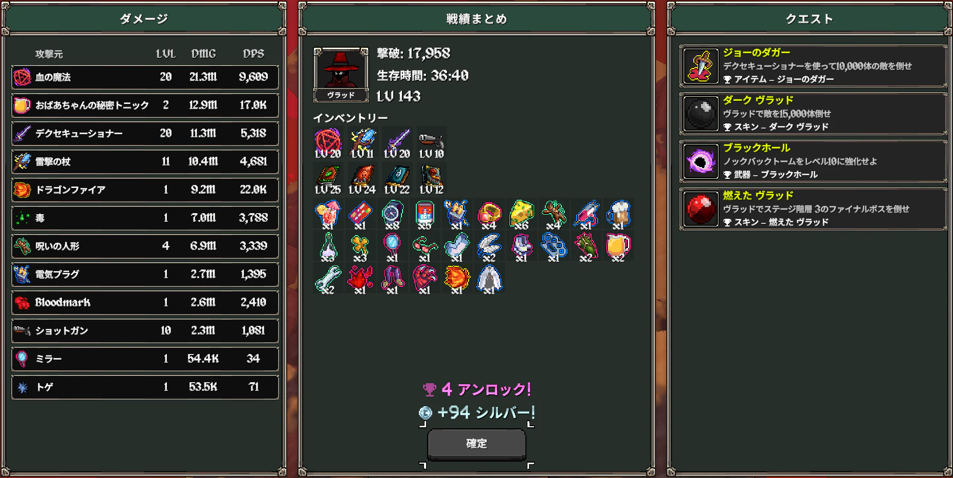 理想の武器構成としては、カタナを血の魔法に変更でしょうか。何だかんだファームがしんどいのでダイスを入れました。